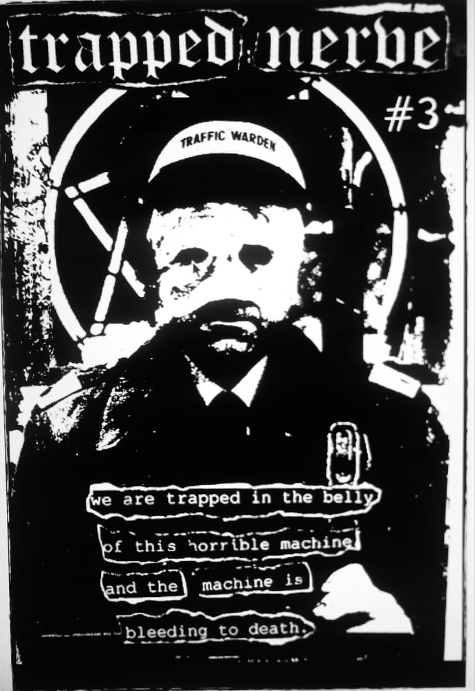 Third instalment of Trapped Nerve. A zine in which I, a perpetually irritated man, attempt to navigate my descent into this Orwellian purgatory by interviewing weirdos and writing about politics and mad old films. To wit it features, Iggy from Abnegation, Dean from Gehenna, Andy from The Horror, Sam from Savage Realm, Simon from Dawn Ray'd, Sam from All Is Lost, Libby and Fin from Untold Suffering and Craw from Cold Hard Truth/ Six Ft Ditch. Plus loads of other stuff. Sixty odd pages. Thick enough that you'll be able to roll it up and use it as weapon, you fucking weapon.